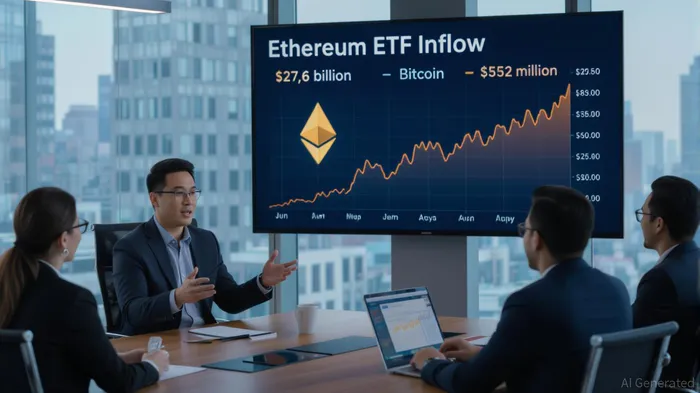 Ethereum’s institutional adoption in 2025 has been nothing short of explosive. Ethereum ETFs attracted $27.6 billion in inflows by Q3 2025, dwarfing Bitcoin’s $552 million [1]. This surge is driven by Ethereum’s unique ability to combine capital preservation with active yield generation. Staking yields of 4.5–5.2% APY and $43.7 billion in staked assets via protocols like Lido and EigenLayer have created a flywheel effect, where institutional capital fuels Ethereum’s network effects [1].