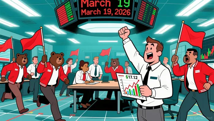 A bullish engulfing pattern emerged on March 19, 2026, with a long white candle closing near the high of $17.12, suggesting short-term buying pressure. However, prior bearish signals, such as a shooting star on February 17 and a bearish harami on March 12, highlight resistance at $16.5–16.8. Key support levels are identified at $15.2 (prior troughs on March 16 and February 26) and $14.8 (February 13 low), with a potential bullish setup if price holds above $15.5.