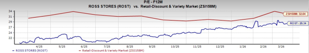 From a valuation standpoint, ROST trades at a forward price-to-earnings ratio of 28.34X compared with the industry’s average of 32.64X.