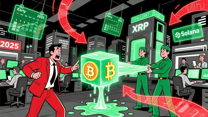 Data from 2025 reveals a stark divergence in institutional investment flows. Bitcoin, once the uncontested leader in institutional adoption, faced $443 million in weekly outflows during a critical period, while XRP attracted $70.2 million in inflows, surpassing even Solana's modest $7.5 million. This trend accelerated with the launch of XRP ETFs in November 2024, which accumulated over $1 billion in inflows, contrasting sharply with Bitcoin ETFs' $782 million in outflows for the week ending December 26. The broader crypto market recorded $446 million in weekly outflows, signaling weak sentiment, yet XRP and Solana ETFs remained resilient, highlighting selective accumulation in assets perceived as undervalued or utility-driven.