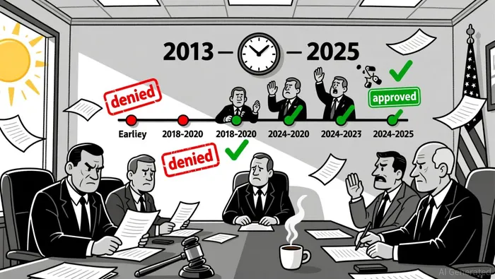 Between 2013 and 2024, the SEC rejected over 20 applications for crypto ETFs, citing concerns such as market manipulation, lack of regulatory clarity, and investor protection risks. These delays were not merely procedural; they reflected a broader strategic calculus. By withholding approvals, the SEC effectively maintained a regulatory monopoly over crypto product innovation, allowing it to shape the market's trajectory while balancing the interests of traditional finance and emerging crypto ecosystems.
