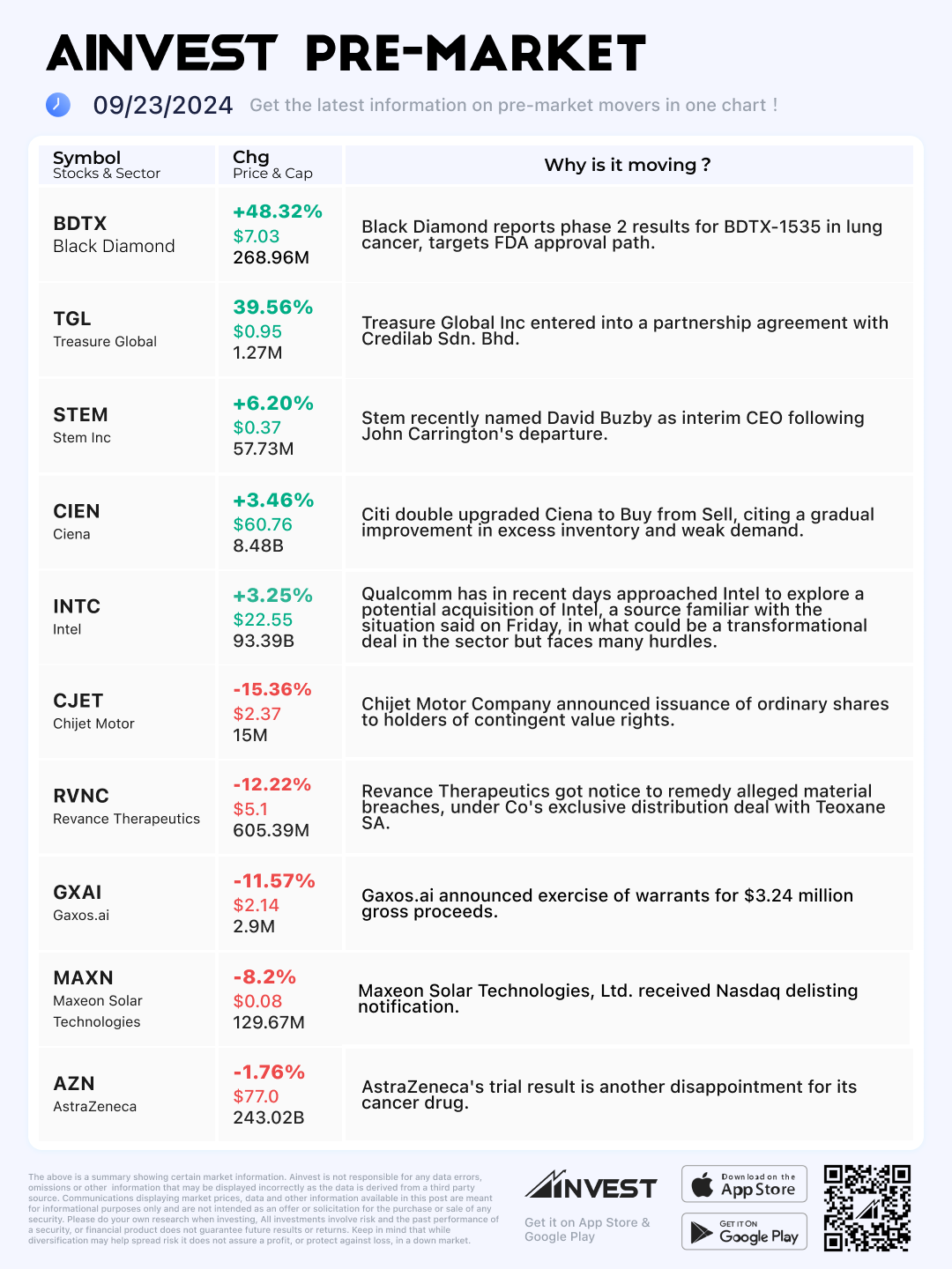 Sept. 23 Pre-market Movers Board: Intel gains 3% on report that Qualcomm made takeover approach