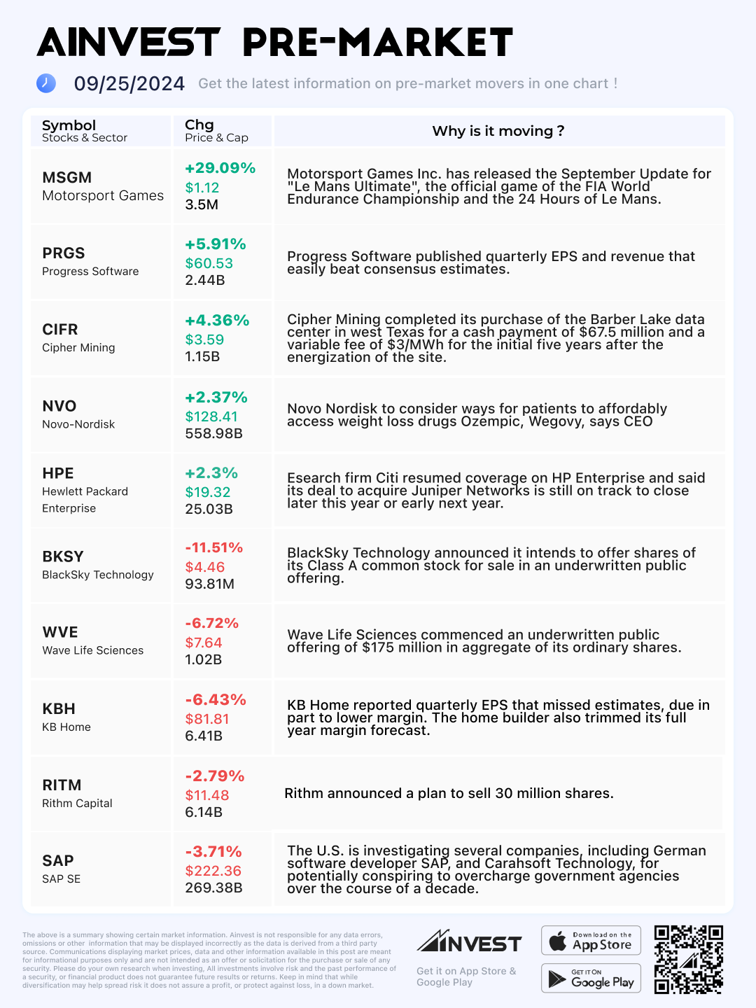 Sept. 25 Pre-market Movers Board: SAP stock falls 3.7% on report of U.S. probe