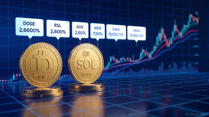 Dogecoin and Solana have surged by 11% and 10%, respectively, in early September 2025, driven by speculative fervor and bullish technical indicators [1]. DOGE's Relative Strength Index (RSI) and Average Directional Index (ADX) suggest strong upward momentum, with the token trading at $0.2649. Similarly, SOL's price action at $232 reflects robust demand, fueled by its role in decentralized finance (DeFi) and Web3 infrastructure.