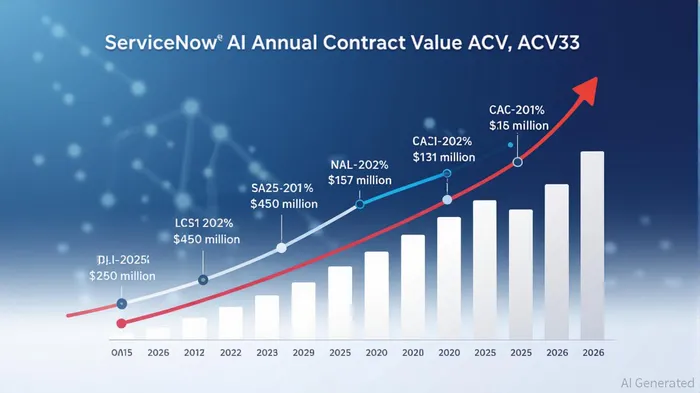 ServiceNow (NYSE: NOW) has emerged as a pivotal player in the AI-driven transformation of federal markets, leveraging its platform to address the operational complexities of government agencies. With AI Annual Contract Value (ACV) surging to $420 million in Q2 2025—a 68% quarter-over-quarter increase—the company is on track to hit its $1 billion target by 2026, signaling robust valuation catalysts for investors [1]. This momentum is underpinned by a confluence of strategic product innovations, federal adoption trends, and macroeconomic tailwinds in the public sector AI market.