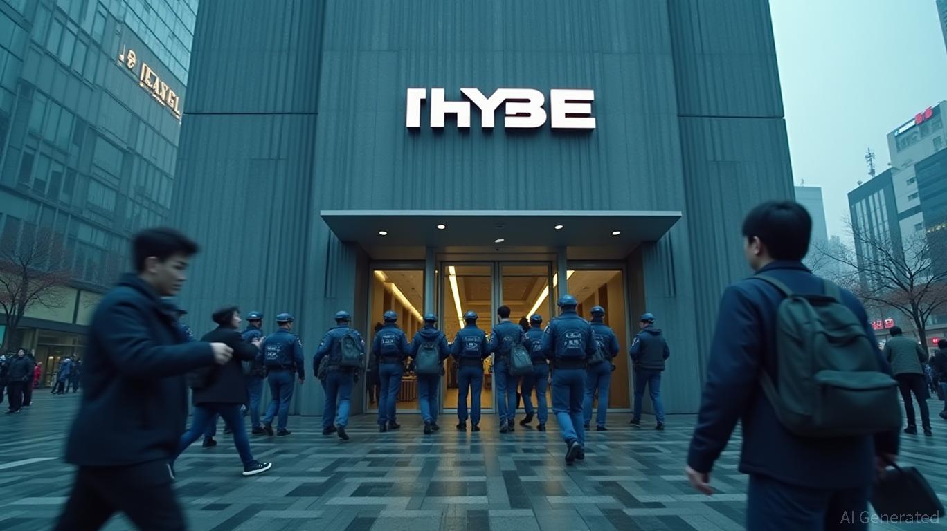 South Korean police raid headquarters of major multinational entertainment company HYBE.