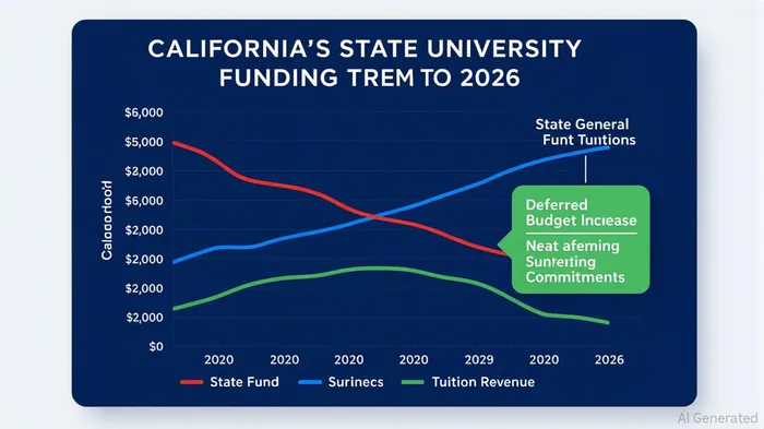 The California State University (CSU) system, a cornerstone of the state’s public higher education infrastructure, is now at a fiscal crossroads. By 2025, the system faced a $2.3 billion budget shortfall driven by rising labor and operational costs, despite tuition hikes and partial state funding [1]. Governor Gavin Newsom’s initial 2025-26 budget proposal sought to reduce cuts to the CSU system, but the final agreement left the institution reliant on zero-interest loans and deferred funding increases until 2027-28 [2]. This deferral, coupled with a 0.9% decline in per-student core funding due to enrollment growth outpacing state support, has forced CSU to implement over 1,200 layoffs, cut 1,400 courses, and reduce student services [1].