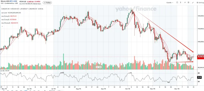 Despite the rebound in equities, bullish sentiment failed to carry over into crypto markets. BitcoinBTC--, etherETH--, and other major tokens initially rallied alongside stocks, but selling pressure quickly resurfaced. Bitcoin has slipped back below the $90,000 mark, while ether has fallen under $3,000. Technically, both are now forming lower-high patterns, which signal growing downside risk. This raises concern that renewed weakness in crypto could spill back into equities, given that digital assets and technology stocks remain firmly within the same risk-sensitive category.