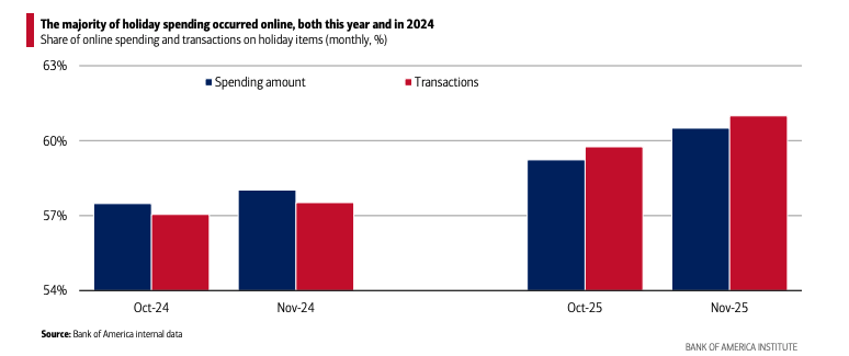 The institute also noted that holiday spending was front-loaded this year, with activity slowing around Black Friday as more purchases shifted online and promotions began earlier.