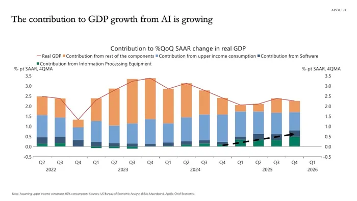 He noted that AI’s contribution to GDP growth continues to rise, meaning a shortfall in expectations could increase recession probabilities .