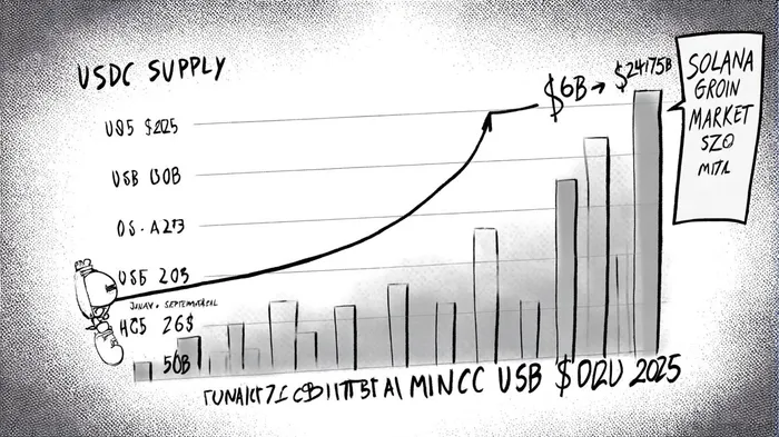 Circle's aggressive expansion of USDC on the SolanaSOL-- blockchain in 2025 has reshaped the stablecoin landscape, offering critical insights for investors navigating the intersection of DeFi and institutional finance. By August 2025, CircleCRCL-- had minted an additional $7.5 billion in USDC on Solana, pushing the total supply to $24.75 billion—a 495% increase from January 2025's $5 billion [1][5]. This growth has solidified USDC's dominance, with the stablecoin now accounting for 77% of Solana's stablecoin ecosystem [6].