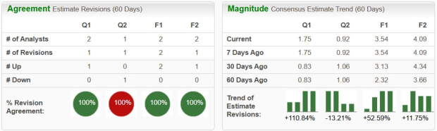 Positive current quarter estimate revisions over the last four weeks.
