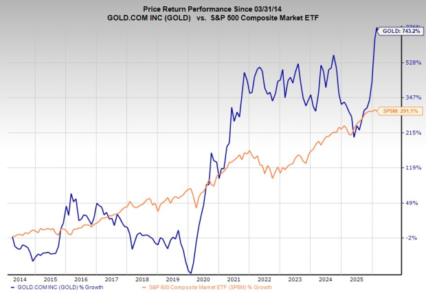 GOLD’s earnings estimates have soared since its Q2 FY26 earnings release in early February, landing the stock its Zacks Rank #1 (Strong Buy). Its third-quarter EPS estimate has surged 111%, with its FY26 estimate up 53% and 12% for 2027. Gold.com Inc. is projected to expand its adjusted EPS by 63% this year and another 16% next year.