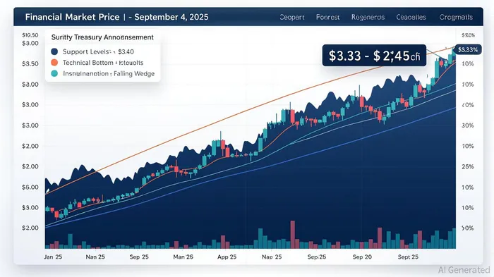 The timing of this buy-in is equally significant. SUI has been consolidating around key support levels ($3.33–$3.40) while forming bullish technical patterns, including a rounded bottom and a falling wedge [2]. These formations suggest a potential breakout, especially if institutional buying pressure continues to outweigh selling risks. The SUI Group’s treasury strategy is further amplified by its access to discounted tokens via the Sui Foundation, enabling cost-effective accumulation and staking yields of approximately 2.2% annually [3].