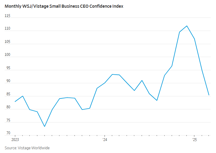 The gloomy outlook is also affecting hiring plans. According to the National Federation of Independent Business (NFIB), February marked the second-highest level of uncertainty among small business owners in its 51-year survey history, topped only by October before the U.S. presidential election.