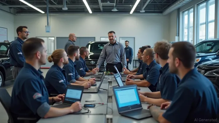 Toyota's T-TEN program trains aspiring technicians in collaboration with dealerships and colleges across the US. The program addresses the shortage of skilled technicians needed to maintain Toyota and Lexus vehicles. Students split time between college and dealership, gaining practical experience and training in new technologies like hybrid and electric vehicles. The program provides a pipeline of qualified technicians for dealerships and helps meet the industry's demand for skilled technicians.