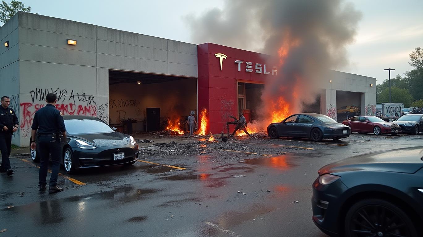 Tesla Dealership Vandalized: Woman Arrested After Molotov Cocktails, Anti-Musk Graffiti