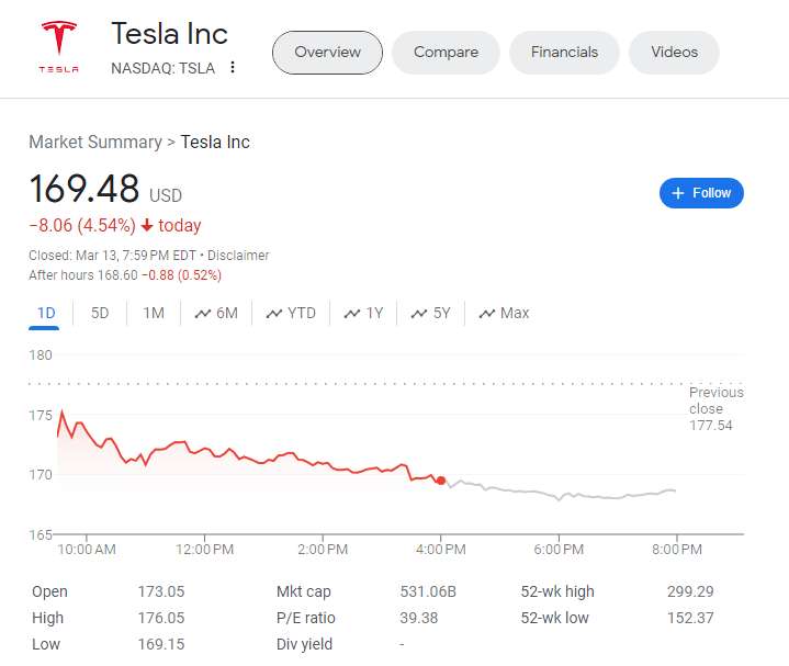 Tesla's Shares Dropped Below The $170 Mark But Analyst Says Things Will Be Worse Off