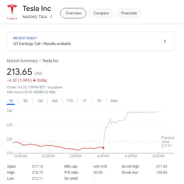 Tesla's Stock Skyrockets In After-hours Trading, Thanks To Its Strong Q3 Earnings and Optimistic Outlook