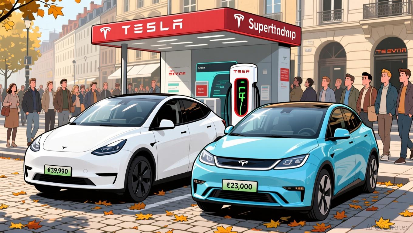 to undercut the Model Y Long Range RWD by nearly €10,000. This move aims to counter declining market share, which from 1.8% a year earlier, as Chinese EVs like BYD's Dolphin Surf (priced at €23,000) gained traction.