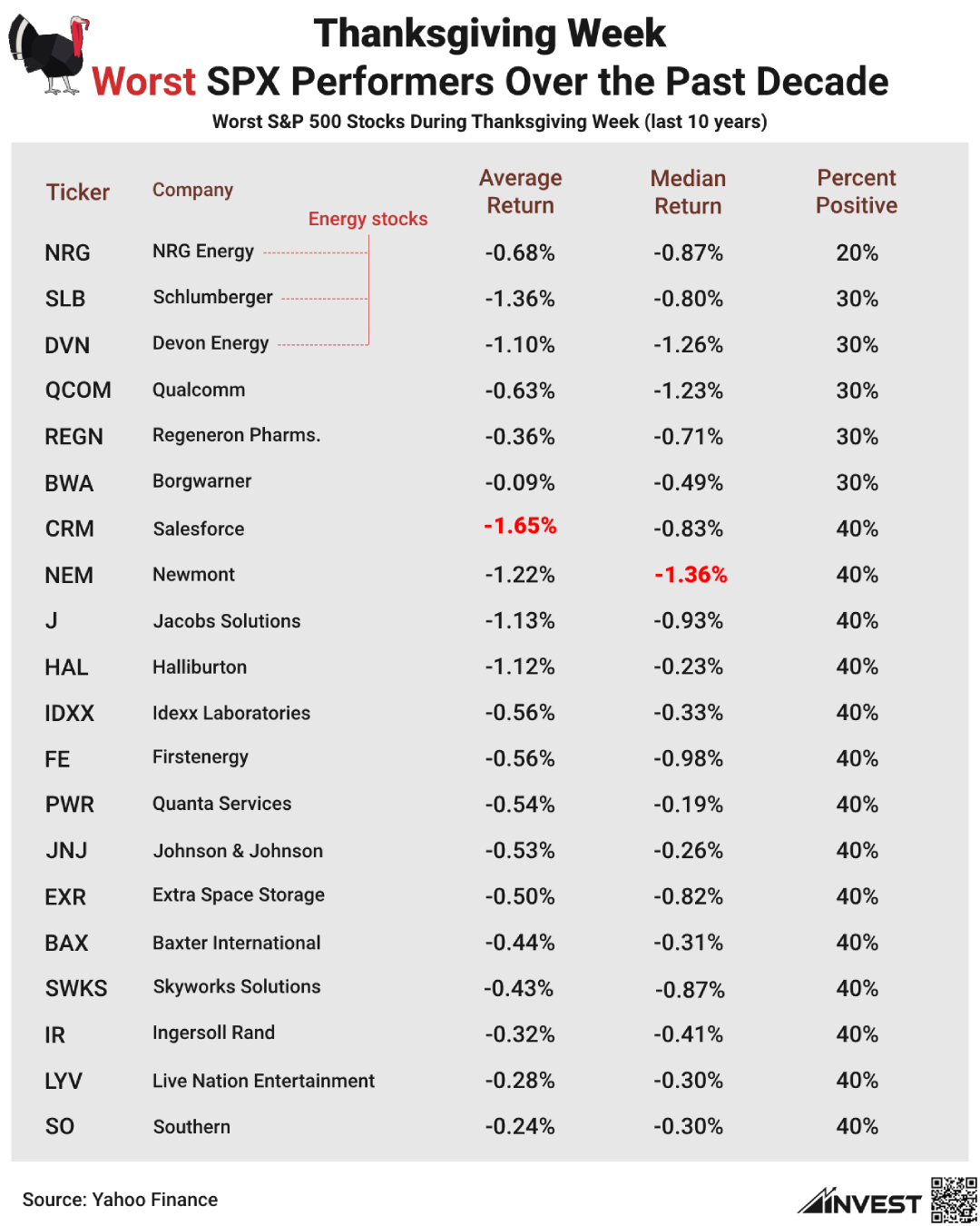 Thanksgiving Week: Best and Worst SPX Performers Over the Past Decade