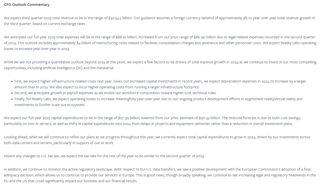 Thoughts on META 2023 Q2 Earnings