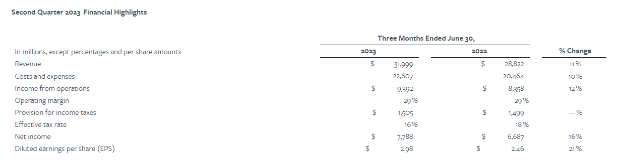 In Q2 2023, META's revenue amounted to $31.999 billion, showing a year-on-year growth of 11.02%. The revenue recovery exceeded 10% and came close to the upper limit of the previously projected range of $29.5 billion to $32 billion. Net profit for the quarter reached $7.788 billion, reflecting a year-on-year increase of 16.46%. If we include one-time restructuring expenses of $1.87 billion and $780 million, respectively, the net profit for the quarter would be a remarkable $10.438 billion, marking a year-on-year growth of 56.09%. This figure surpassed the company's historical high Q2 net profit of $10.394 billion recorded in 2021. META's profitability is truly impressive, with the gross profit margin improving from 78.68% to 81.42% quarter-on-quarter, and the operating profit margin surging to 29.35% from the previous quarter's 25.23% and the one before that at 19.89%.
