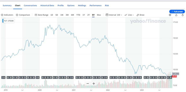 Bond Market Downturn: Over the past three years, the iShares 20+ Year Treasury Bond ETF has seen a notable decrease in value, plummeting from 166 to 89.