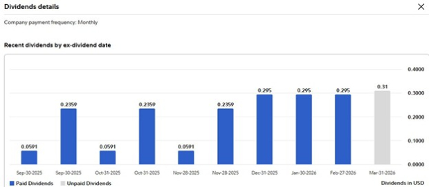 Trading at a reasonable 9X forward earnings multiple, what has made EPR more appealing to income investors is that its annual dividend is currently at 7.02% and is paid monthly, as shown below, instead of quarterly or semi-annually.