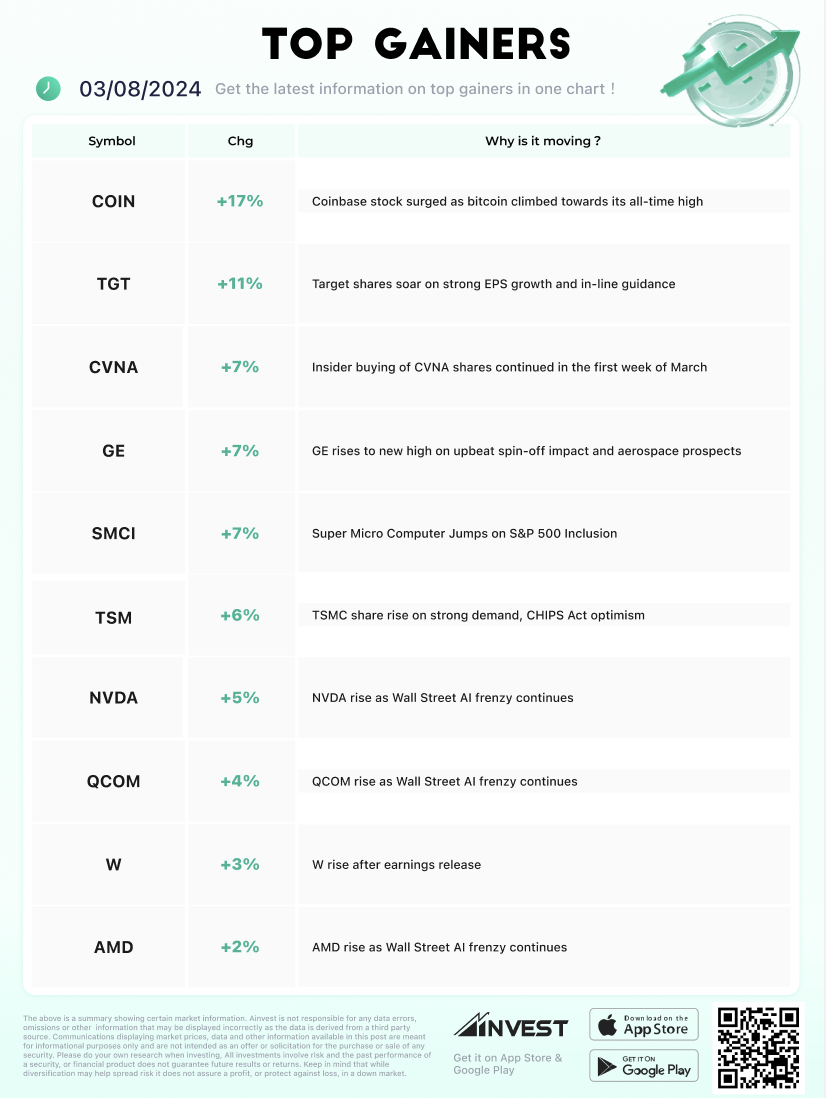 This week's top gainers reflect the dynamic nature of the market, with technology and retail sectors showing strong performance. The bullish run in cryptocurrency prices, strategic adjustments in retail, and advancements in AI and semiconductor technology are key themes driving these stocks' impressive gains. Investors will be keenly watching these companies for further developments and potential opportunities in the coming weeks.