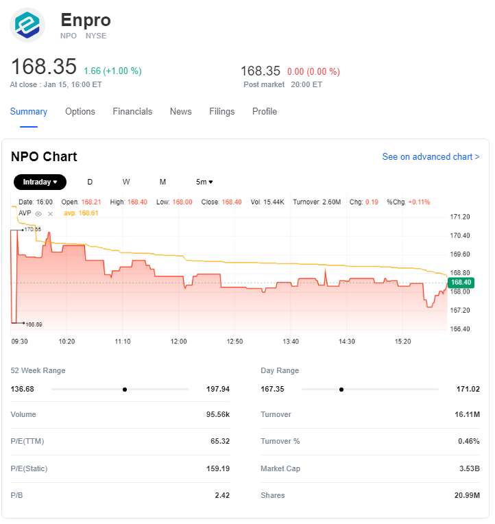 EnPro Industries Inc. (NPO) is currently trading at $168.35 per share, with a median target price of $215.00. Analysts predominantly recommend a buy rating for this company, indicating high investor confidence.