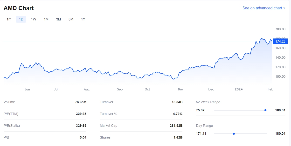 Since being selected, AMD has risen by 37.81% as of February 2nd.