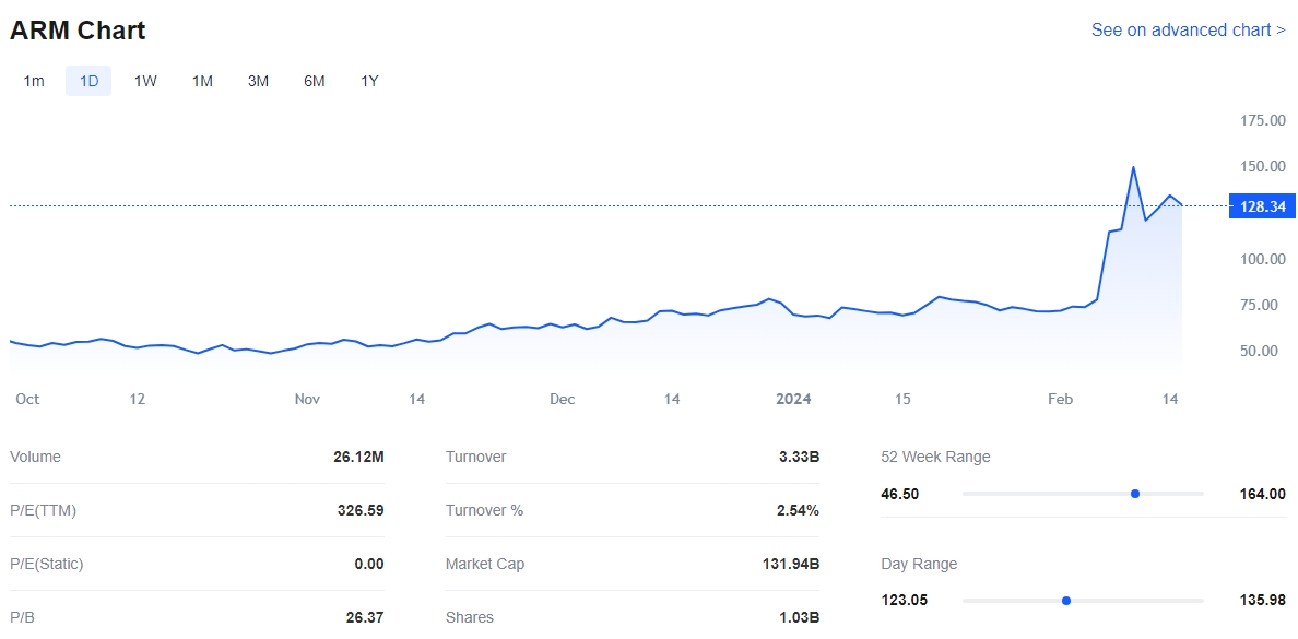 Nvidia's largest investment of $147.3 million was in Arm Holdings, the chip designer that it failed to buy due to antitrust hurdles two years ago. Nvidia had indicated interest in purchasing shares of Arm during the British company's Nasdaq debut last year. Shares of Arm, which offers processors that complement Nvidia's AI chips for data center work, were up 2.1%.