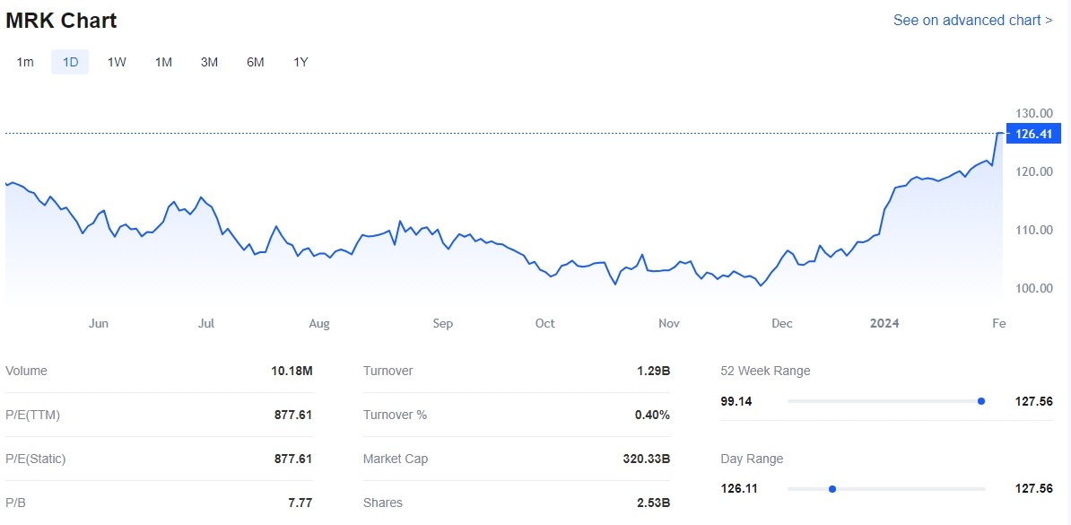 Merck, the multinational pharmaceutical giant, has delivered a stellar performance in its fourth-quarter 2022 (Q4) earnings report, surpassing market expectations. Excluding non-recurring items, the company reported earnings of $0.03 per share, a remarkable $0.14 better than the estimated loss of $0.11 per share. This outstanding financial performance fueled a 4.3% surge in Merck's shares, reaching all-time highs.