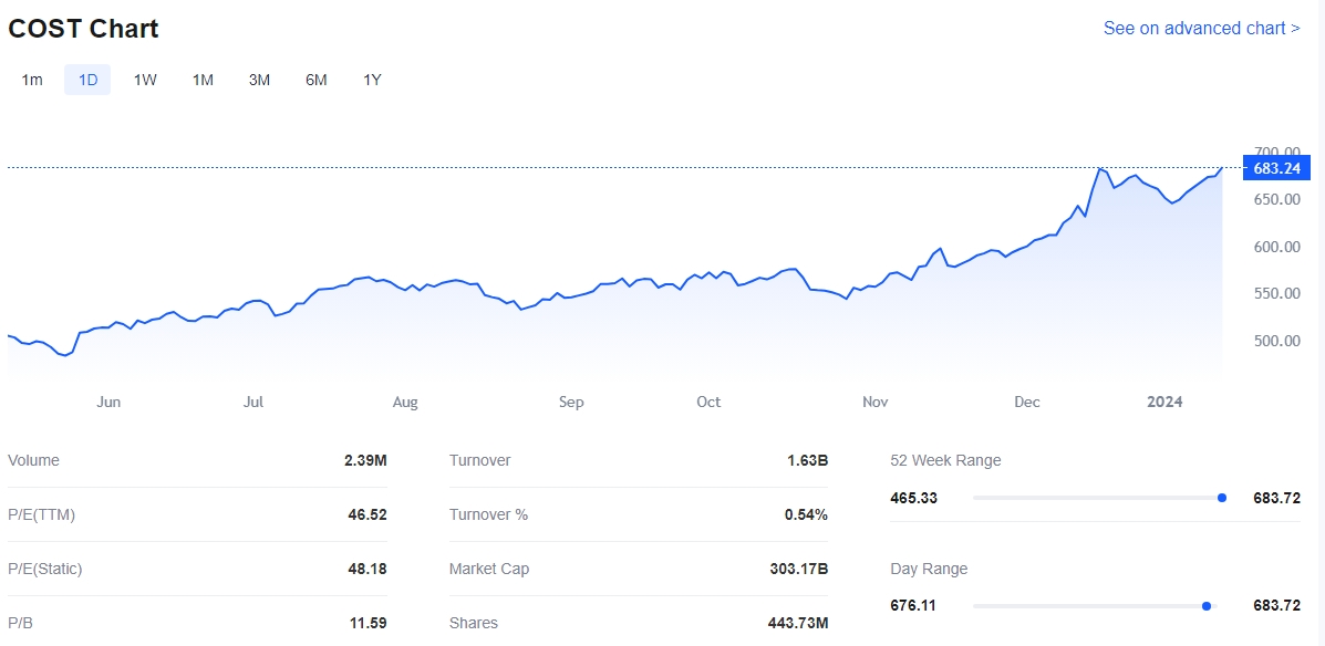 COST has risen by 14.41% since being selected.