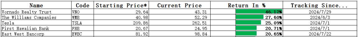 Note: Starting price is the stock's price when it was initially included in the stock pool.