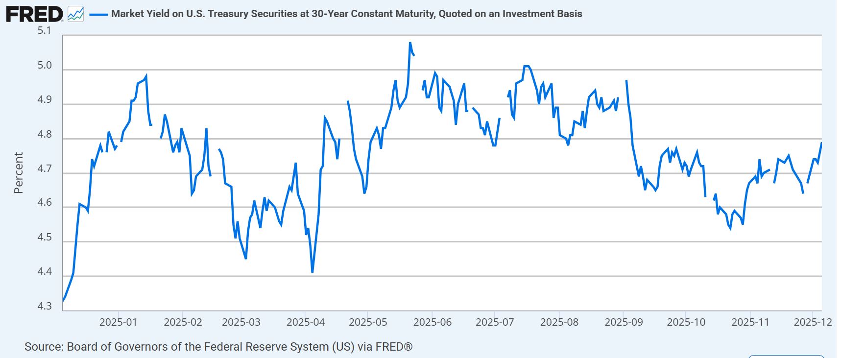 The 30-year bond, however, operates on its own terms. It's the least tethered to whatever Jerome Powell says on Wednesday. Instead, larger fiscal deficits and shifting inflation expectations are driving the action. The U.S. government's borrowing needs aren't shrinking, and investors demanding compensation for holding debt over three decades are repricing risk accordingly.