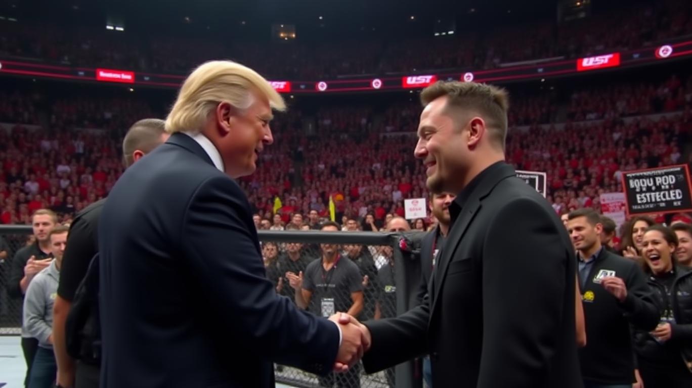 In a rare convergence of political and celebrity influence, former US President Donald Trump and entrepreneur Elon Musk attended the UFC 314 fight in Miami over the weekend. This event was historic as Trump became the first sitting president to attend a UFC event. The atmosphere at the Kaseya Center in Miami, Florida, was charged with excitement as Trump was greeted with a standing ovation and enthusiastic chants of "U-S-A!" from the crowd upon his entrance. The event was attended by a star-studded cast, including UFC president DanaDAN-- White, top aides, and family members of Trump. Musk, accompanied by his sonSON-- X Æ A-12, was also present, adding to the high-profile nature of the gathering. The crowd's enthusiasm was evident, with thousands of spectators showing their support for Trump and the fighters. This event underscored the intersection of politics and sports entertainment, making it a significant moment for both Trump and the UFC.