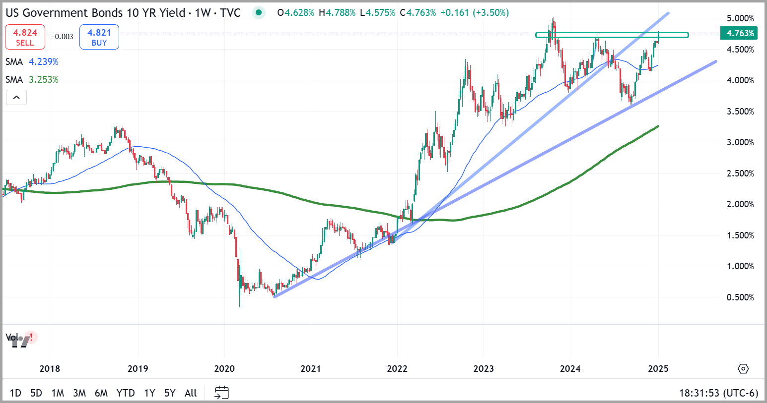 The recent surge in Treasury yields further complicates monetary policy. While some of the increase reflects a higher implied neutral rate, much of it is driven by an elevated term premium. This premium, influenced by sentiment and exaggerated growth expectations, has pushed yields above levels supported by economic fundamentals.