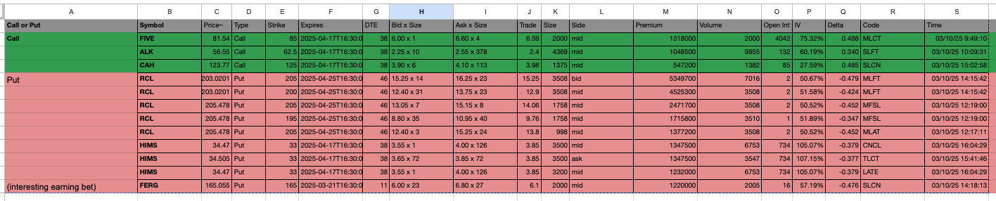 Unusual option trades 3-10-2025: FIVE, ALK, CAH, RCL, HIMS, FERG