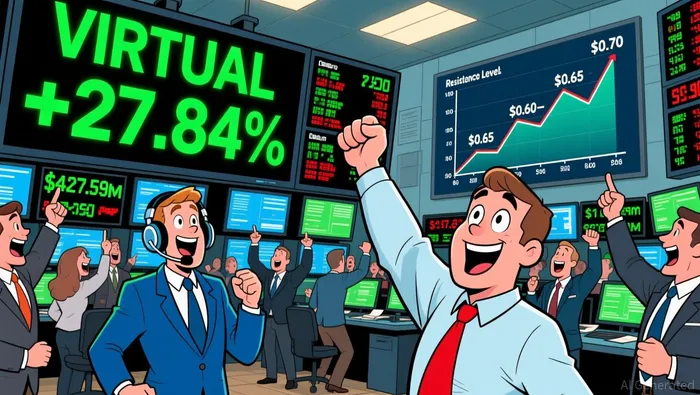 Despite the 27.84% surge, VIRTUAL faces significant technical resistance at $0.70. The token's rally is fragile, with long-term bearish indicators such as declining On-Balance Volume and price trading below multiple moving averages according to data. The key resistance at $0.70 liquidity cluster is a potential floor, but a break below it could accelerate the existing sell-off according to analysis.