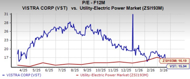 Vistra is currently trading at a premium valuation compared with the industry. Its forward 12-month price-to-earnings (P/E) ratio is 15.94X compared with the industry average of 16.19X.