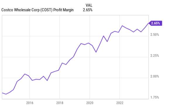 The best illustration of this is that, over the past decade, through a global pandemic and inflation rates not seen since the 1970s, Costco's profitability has steadily increased. And this profitability combined with its member retention rate is exactly what justifies its high P/E multiples in the past.
