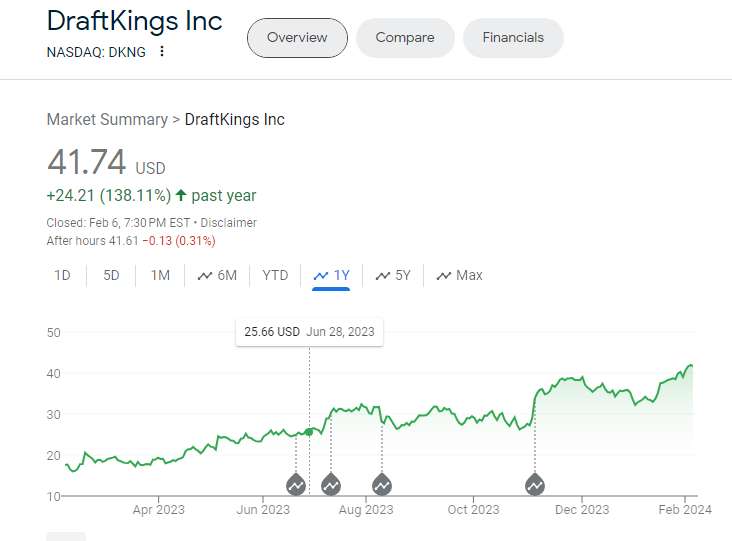 Its tangible progress toward profitability also makes the company attractive to potential buyers: DKNG's total operating losses were $745 million through the first three quarters of 2023, which were more than $500 million less than the company's $1.3 billion loss at the same point last year. Even better, a shot at positive earnings growth for the next quarter is also on the table for DraftKings. The company will release its financial statements on February 15, 2024.