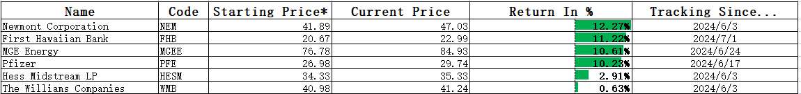 Note: Starting price is the stock's price when it was initially included in the stock pool.