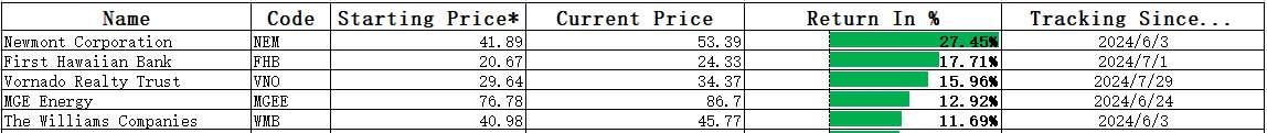 Note: Starting price is the stock's price when it was initially included in the stock pool.