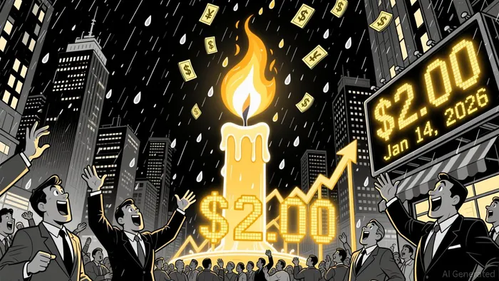 The price action on January 15, 2026, reveals a nuanced battle between bulls and bears. A full-bodied candlestick breakout above the $2.00 level on January 14, supported by a $23 million one-minute volume spike, suggests structural buying. However, mixed signals persist. A gravestone doji on the weekly chart indicates short-term exhaustion near $2.30–$2.40, with prices closing closer to $2.09. This pattern warns of potential profit-taking or a bearish reversal if the $2.00 level fails.