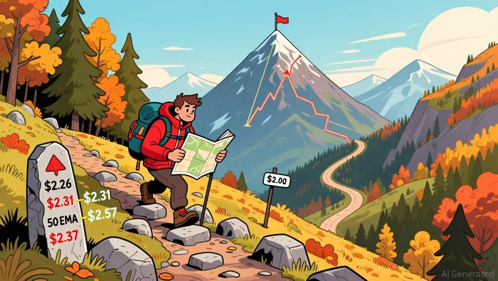 Technical analysis underscores a favorable setup for bulls. The price has retested the 20 EMA at $2.20, confirming a return of short-term momentum. However, significant resistance remains at the 50 EMA ($2.37) and the 100/200 EMA cluster ($2.52), which form a dense ceiling. A daily close above these levels could trigger a move toward $2.52, where trendline resistance converges with long-term moving averages. The 0.5 Fibonacci level at $2.26 and the 0.618 level at $2.31 are immediate targets, with a sustained breakout above $2.26 potentially invalidating the descending triangle structure and opening a path to $2.69.