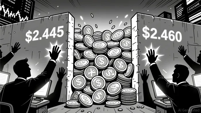 XRP's price has faced consistent resistance in the $2.22–$2.459 range, with multiple failed attempts to breach these levels since October 2025. On-chain data reveals a dense supply cluster between $2.445 and $2.460, where 1.749 billion XRP is concentrated, acting as a formidable barrier to upward movement. The token's inability to sustain a move above $2.00-despite three attempts-has reinforced a descending channel pattern, with sellers dominating on elevated volume.