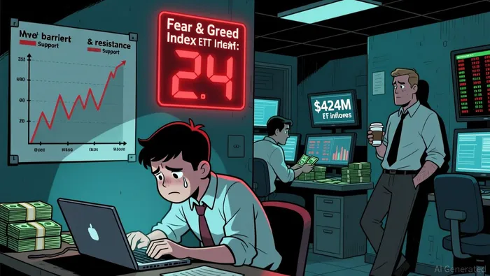 XRP's price consolidation between $1.85 and $1.91 in December 2025 was supported by critical technical levels, including a support band at $1.77–$1.82 and resistance at $1.93 (SMA 20) and $2.11–$2.15 (EMA 12) according to technical analysis. Despite these structural underpinnings, the Crypto Fear & Greed Index plummeted to 24, signaling extreme fear among retail investors. This pessimism was amplified by a 20–30% spike in bearish social sentiment compared to November 2025, even as XRP stabilized near $1.88. However, institutional demand told a different story: ETFs added $424 million in XRP during December alone, suggesting confidence in its long-term utility as a cross-border settlement asset.
